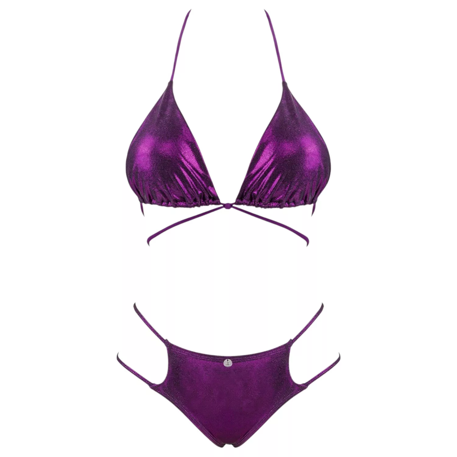 Eye-catching metal shimmer bikini in classic triangle cut, featuring spicy strap details for a super sexy look!